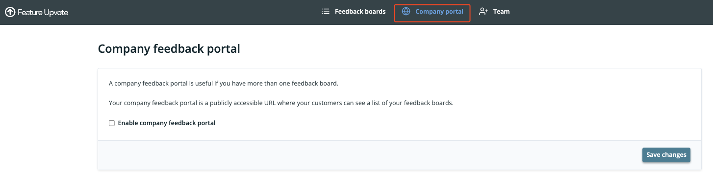 If you have multiple boards on Feature Upvote, you may want to enable your company portal. This is a page that publicly lists all your feedback boards. This page is useful for: