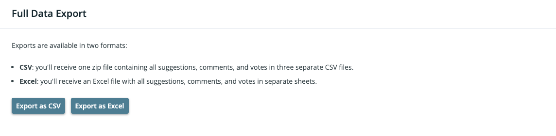 Both the CSV and the Excel options give you the same data – all the suggestions, all the comments, and all the votes.