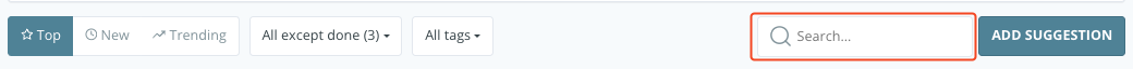 The Search bar lets you search by text or filter by status. Read more about our search functionality.