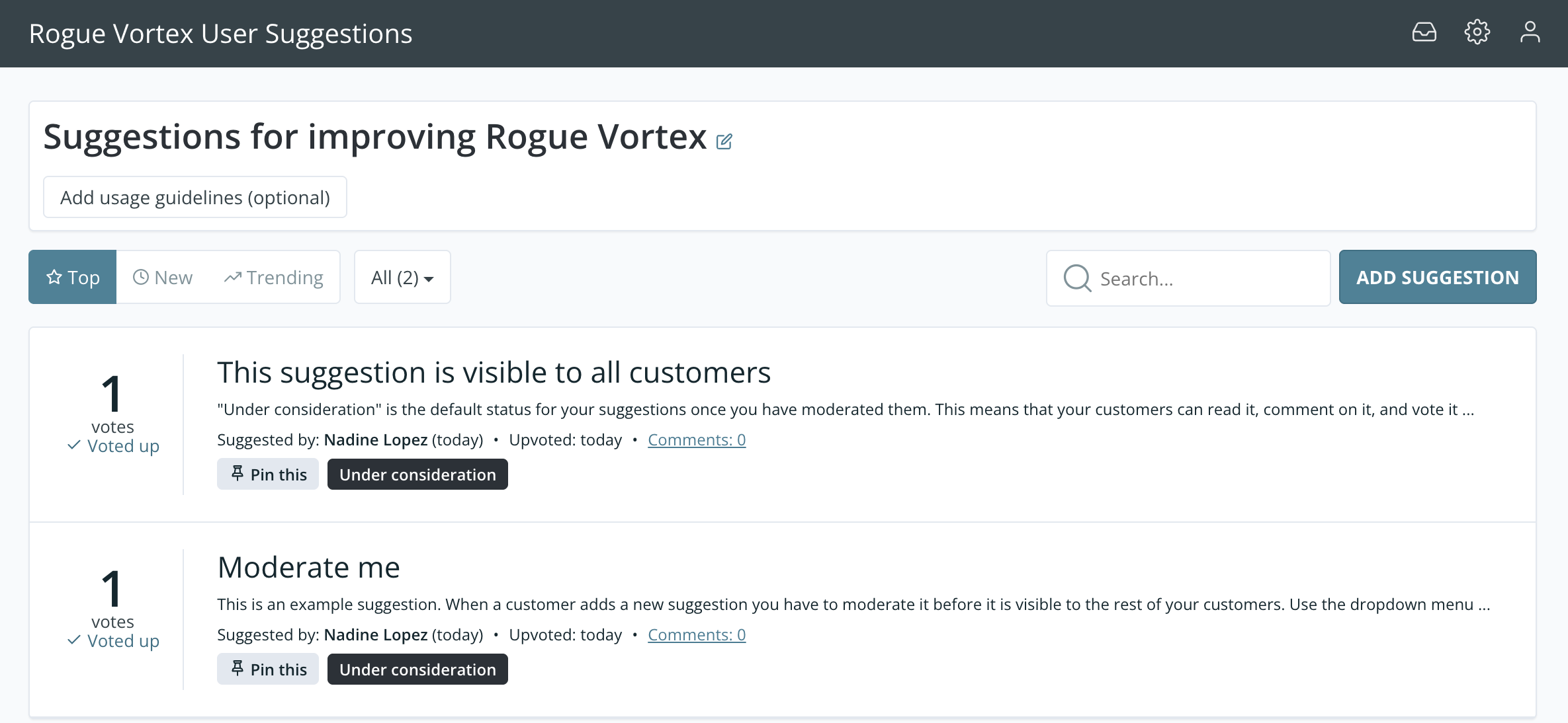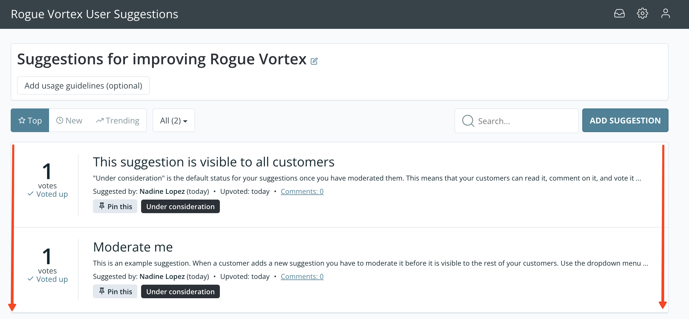 - Moderation tools. When there are new suggestions or comments awaiting approval, you’ll see a small red circle containing the total number that are unmoderated.