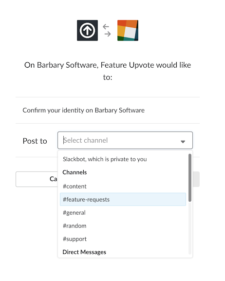 - You’ll now be returned to Feature Upvote with a confirmation that Slack has now been integrated.