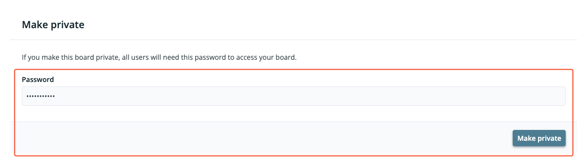 By default, your feedback board is publicly visible. You can make it private by adding a password. Then you can share the password with anyone you want to have access, including team members and select clients.