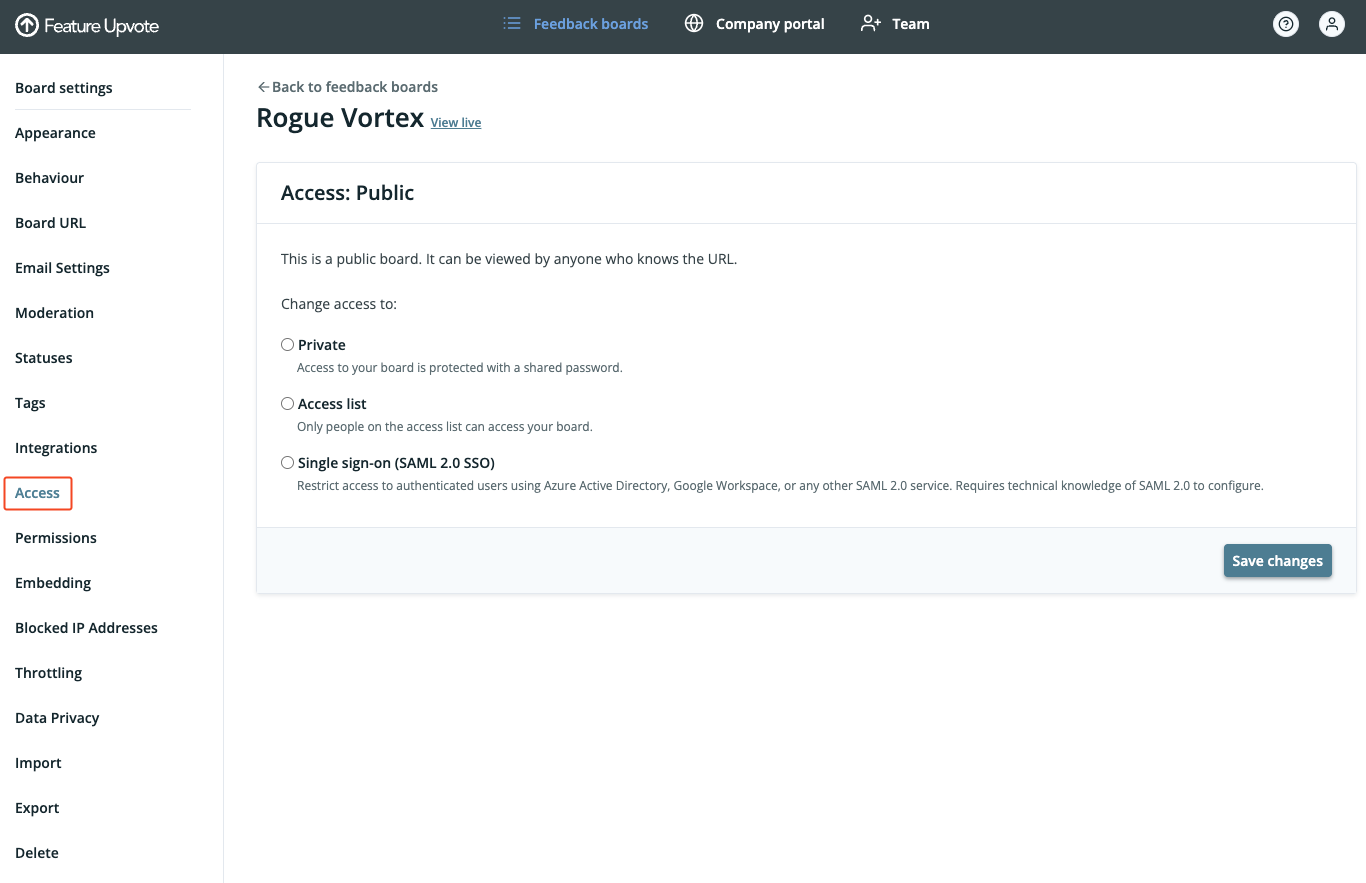 Now only people with whom you’ve shared the password can access your Feature Upvote feedback board.