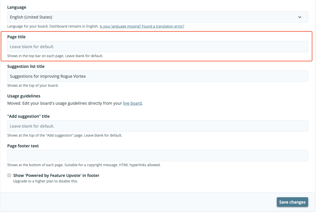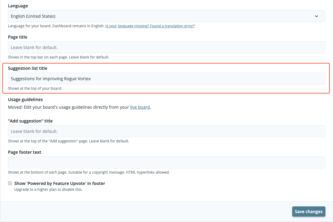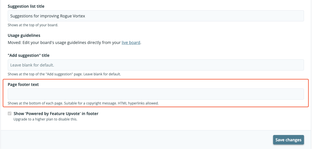 - Uncheck the box labelled “Show ‘Powered by Feature Upvote’ in footer”.