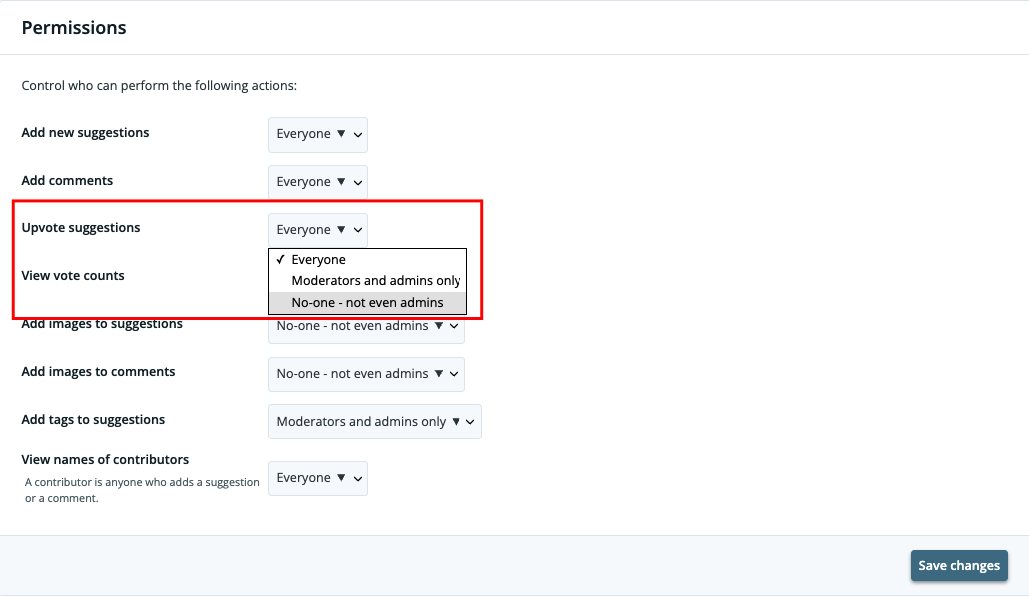 Set ‘Upvote suggestions’ to ‘No-one-not even admins’
