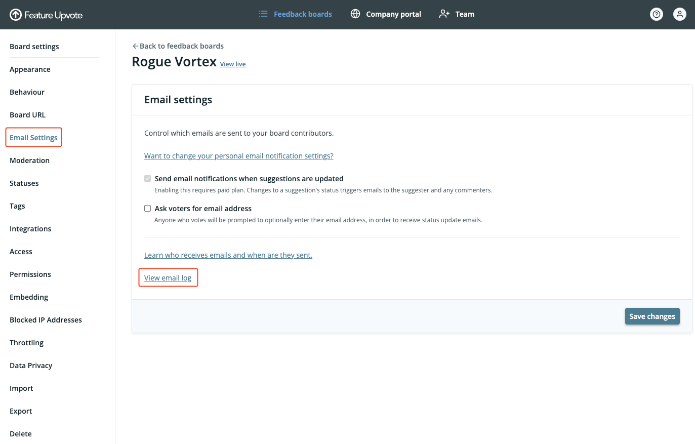 - from your Feature Upvote dashboard, go to Settings → Email Settings.